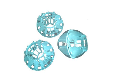 聚丙烯空心球是采用聚丙烯塑料成球,由兩個半球合成一個球形,每個半球上開有12個半扇形葉片,兩個半球的扇形葉片相互錯開。比其他球形填料的比表面積大。是水處理設備中廣泛采用的一種新型有效塔器填料。廣泛用于國內電力、化工、造紙、環保等到行業在脫碳、脫碳酸、油水分離、海水淡化、純水、廢水、廢氣處理等裝置中使用。